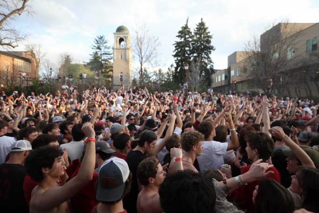 After the win, fans flooded the streets near the school, particularly the intersection of University Boulevard and Evans Avenue. At least one couch was set aflame.
